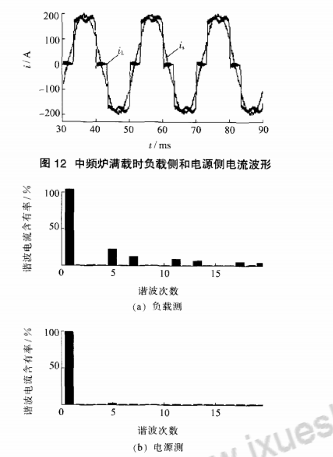 晶閘管中頻電源的應(yīng)用是從1996年瑞士BBC公司研制成功第一臺感應(yīng)熔煉電源開始的.并得到了廣泛應(yīng)用.遍及熔煉、透熱、種子處理、環(huán)保等多個(gè)領(lǐng)域…國內(nèi)晶閘管中頻電源已發(fā)展成為電力系統(tǒng)中最重要的非線性負(fù)荷由于中頻電源裝置在實(shí)現(xiàn)功率控制和處理的同時(shí).會不可避免地產(chǎn)生非正弦波形,向電力系統(tǒng)注入諧波電流.使公共聯(lián)結(jié)點(diǎn)(PPC)的電壓波形嚴(yán)重畸變.使電網(wǎng)電能質(zhì)量嚴(yán)重下降.電能損耗顯著上升.被公認(rèn)為電力系統(tǒng)的一大公害。諧波治理工作尤為重要E2]為減少中頻爐帶來的諧波污染,國內(nèi)已采用多脈動整流技術(shù)研制出了多種中頻爐設(shè)備,包括6脈,l2脈,24脈中頻爐等,由于后兩者成本相對較高.因此大多煉鋼企業(yè)仍舊采用6脈動中頻爐進(jìn)行金屬熔煉.其諧波污染問題仍不能忽視現(xiàn)階段對于中頻爐諧波的治理方法主要有2種方法:一種是補(bǔ)救性的治理方法.即為克服既存諧波問題所采用的方法:一種是避免中頻爐諧波出現(xiàn)的預(yù)防性的措施[3]。雖然第二種方法可以從根本上解決日益嚴(yán)重的諧波污染.但對于現(xiàn)已大量使用的中頻爐.則只有采用第一種方法補(bǔ)償其產(chǎn)生的諧波將結(jié)合中頻爐的工作原理及其諧波治理措施進(jìn)行討論.提出利用有源濾波器(APF)對6脈中頻爐工作的不同階段產(chǎn)生的諧波進(jìn)行補(bǔ)償與治理分析